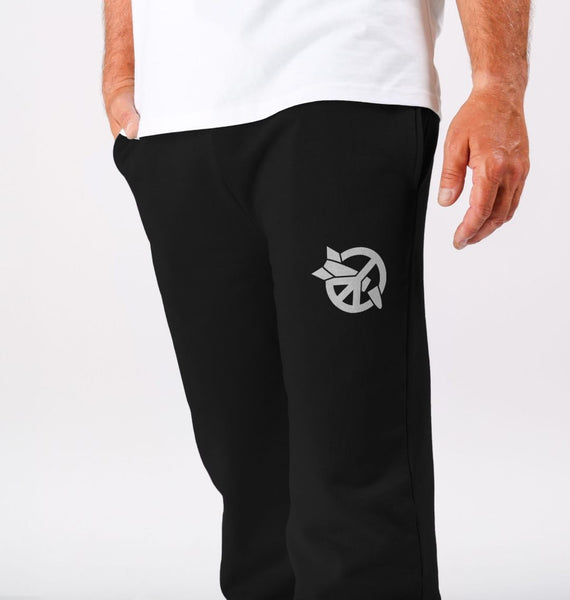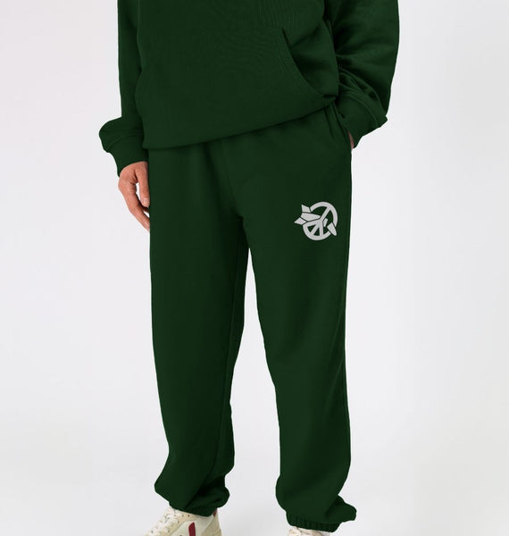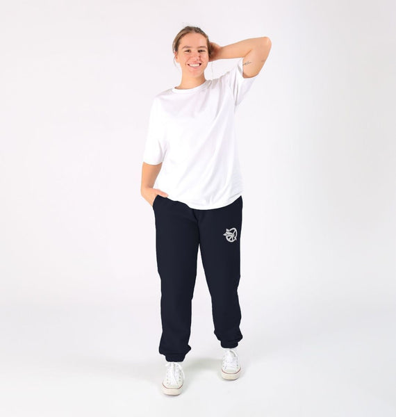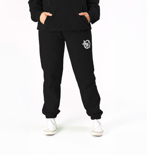 Certified organic cotton fleece unisex joggers with elasticated cuffs and waistline. 300 gsm. Wash cool, hang dry. GM-free. Not tested on animals. Does not contain animal-derived products. Material made in a renewable energy-powered factory, audited for a wide range of social and sustainability criteria. Made to be remade - scan the QR code in the care label to send it back when worn out.